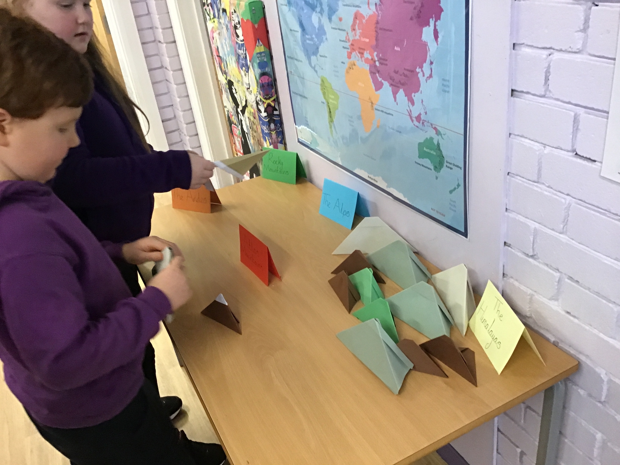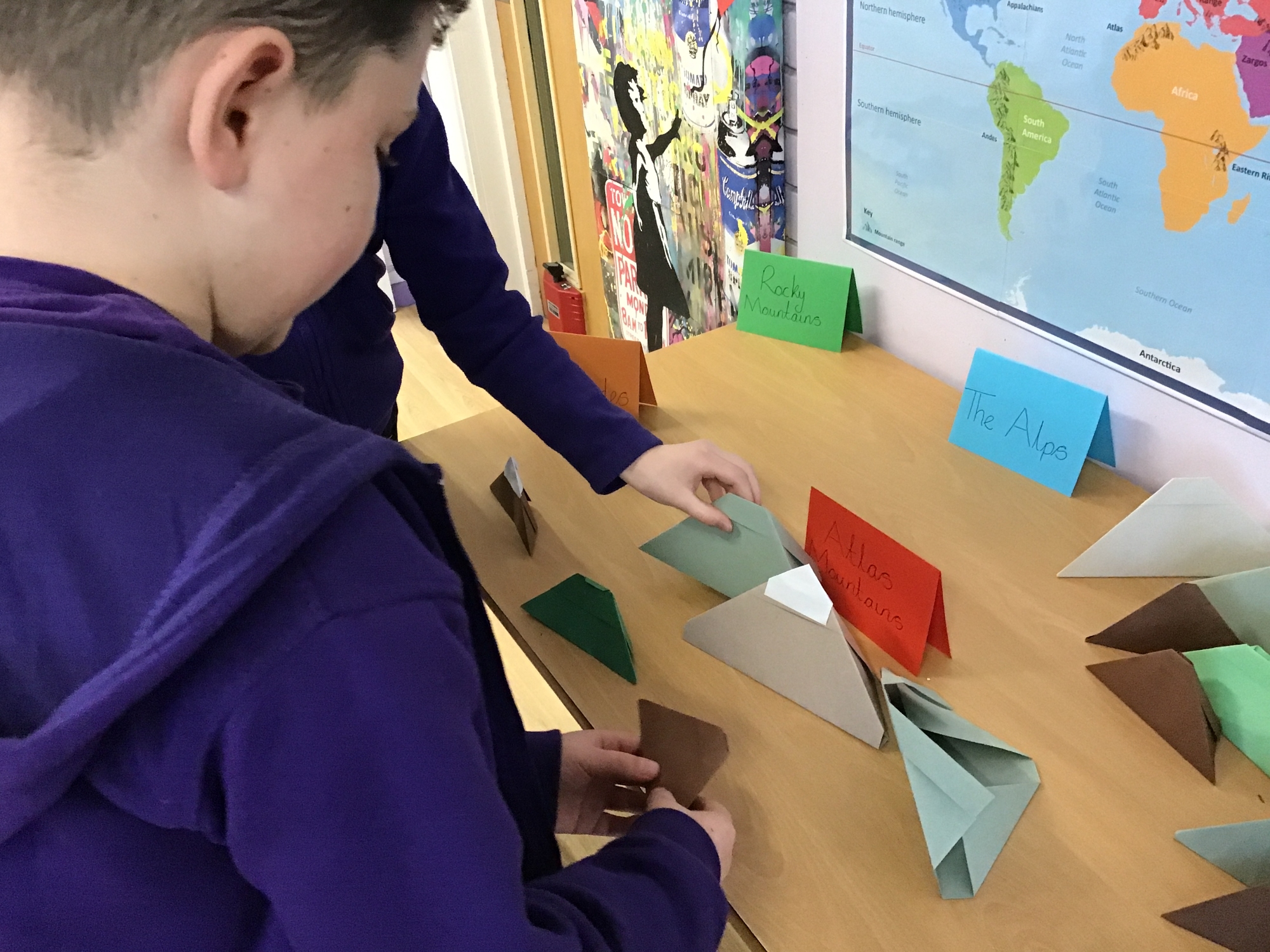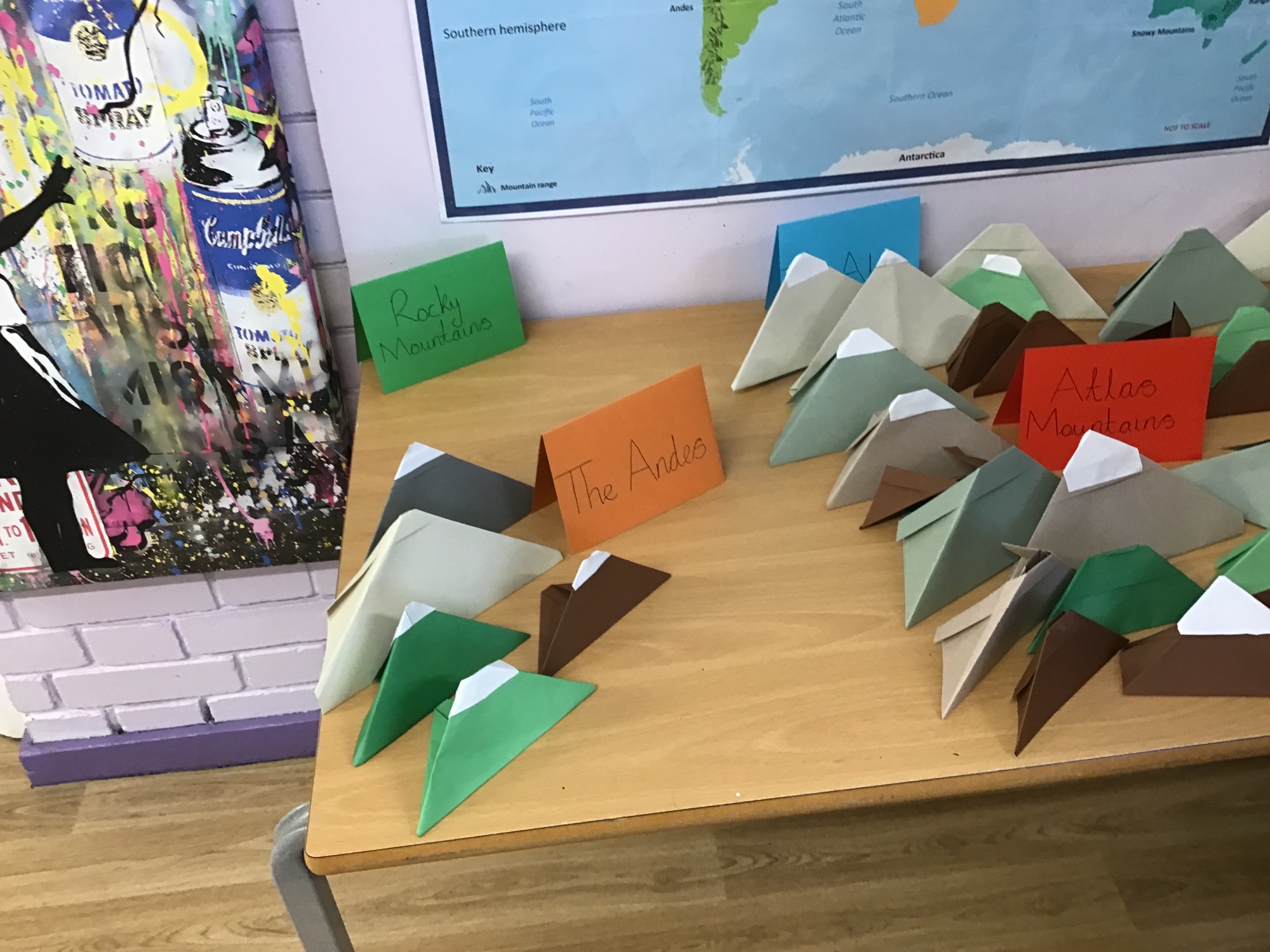 We have launched our new topic with learning what a mountain range is and using an atlas to locate famous mountain ranges around the world. We then made our own mountains using origami before drawing a mountain range picture. Take a look at the photos below