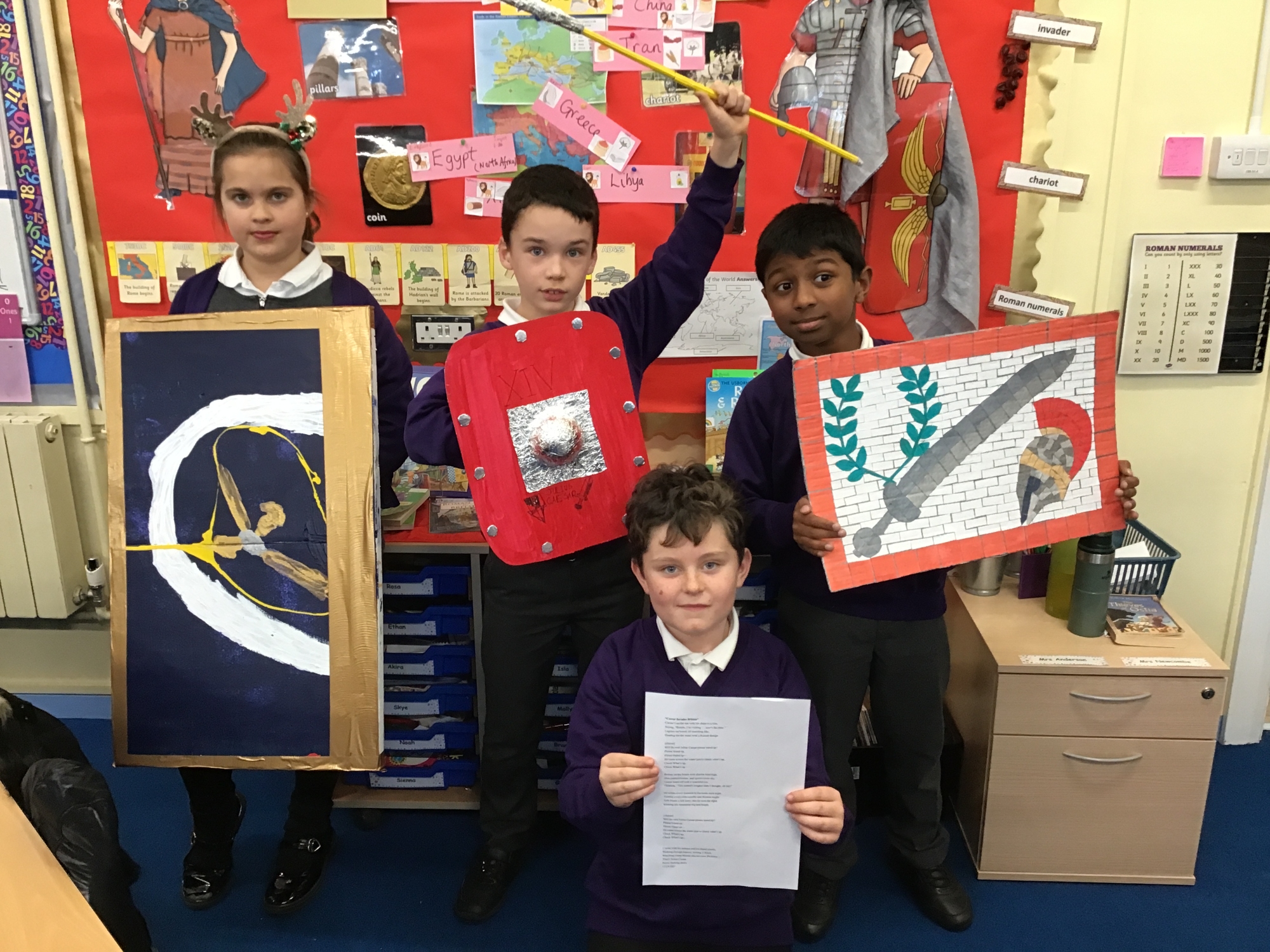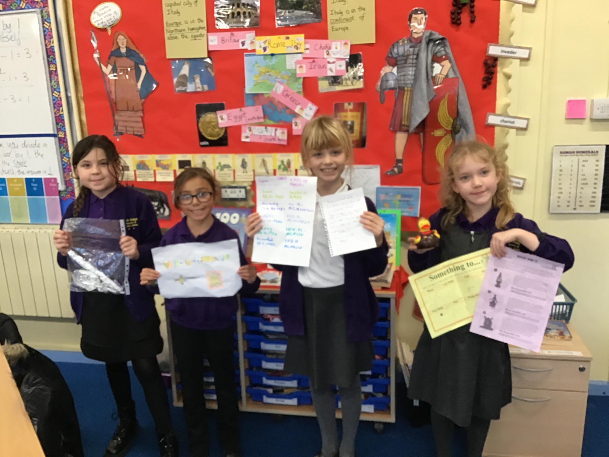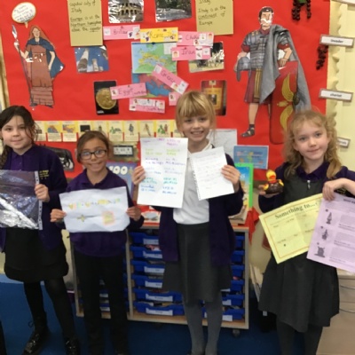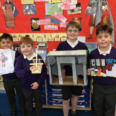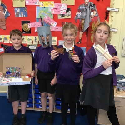 We had an amazing variety of project homework including catapults, Lego models, shields and spears, facts, drawings and even a costume of Boudicca! There were Powerpoints from Delwyn and Mahir, a Roman rap from Dylan, a helmet, mosaic patterns, drawings and models. Great learning, great projects!