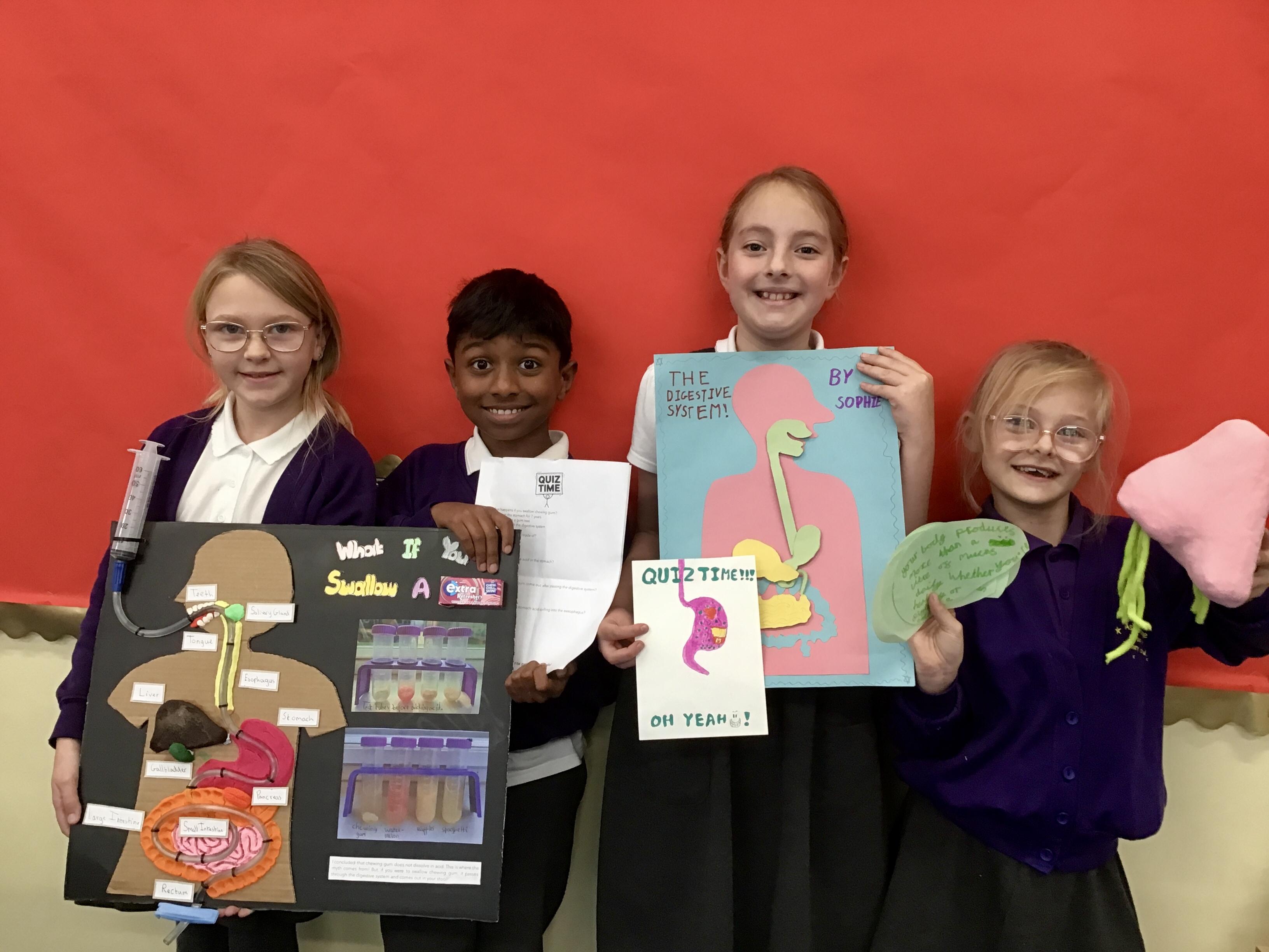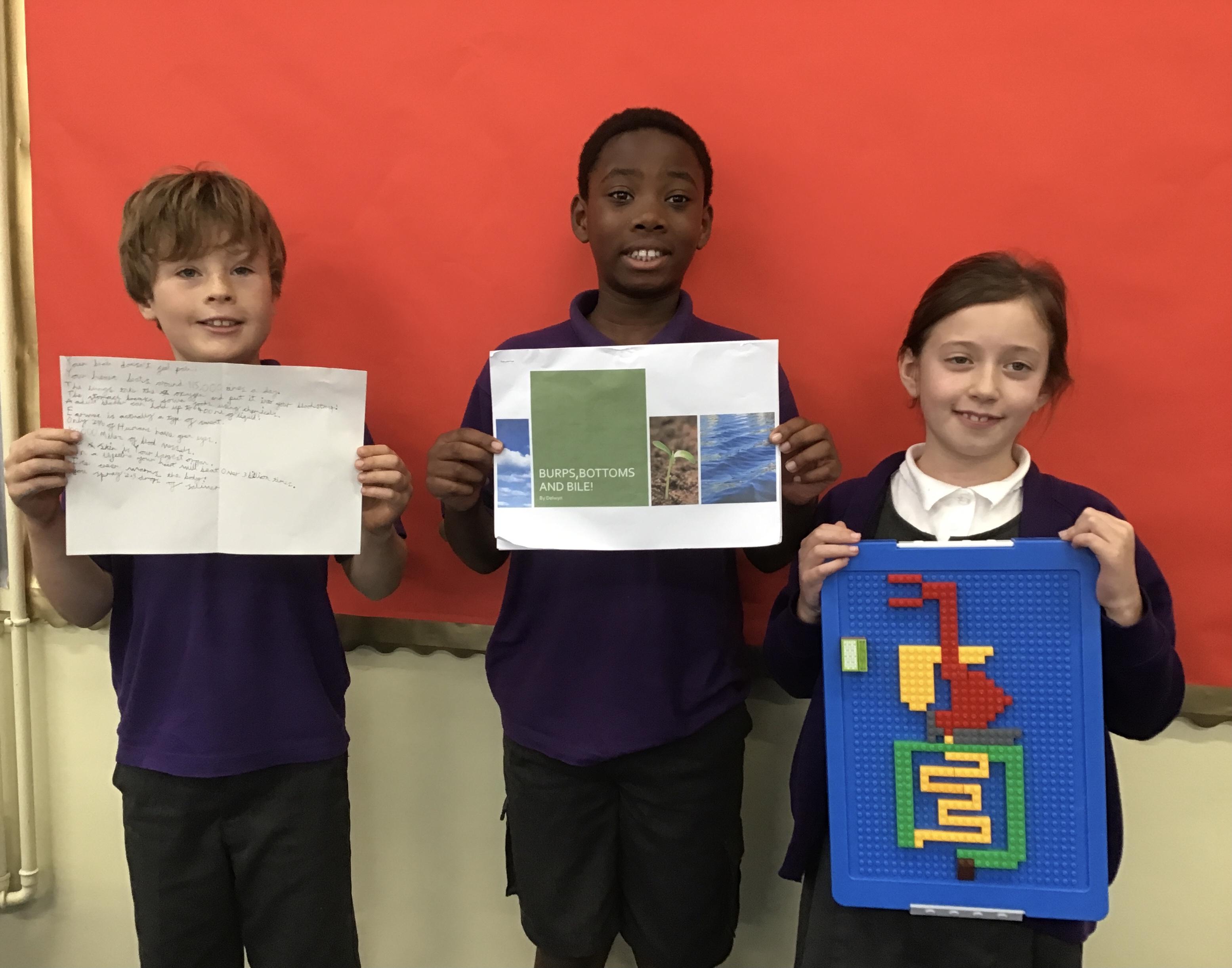 We had some amazing project homeworks from everyone in the class to show their learning this term. These included drawings, diagrams, facts, a science experiment, models, PowerPoint presentations from Molly, Leo and Delwyn as well as a 'Minecraft' journey through the digestive system! Take a look at our photos below.
