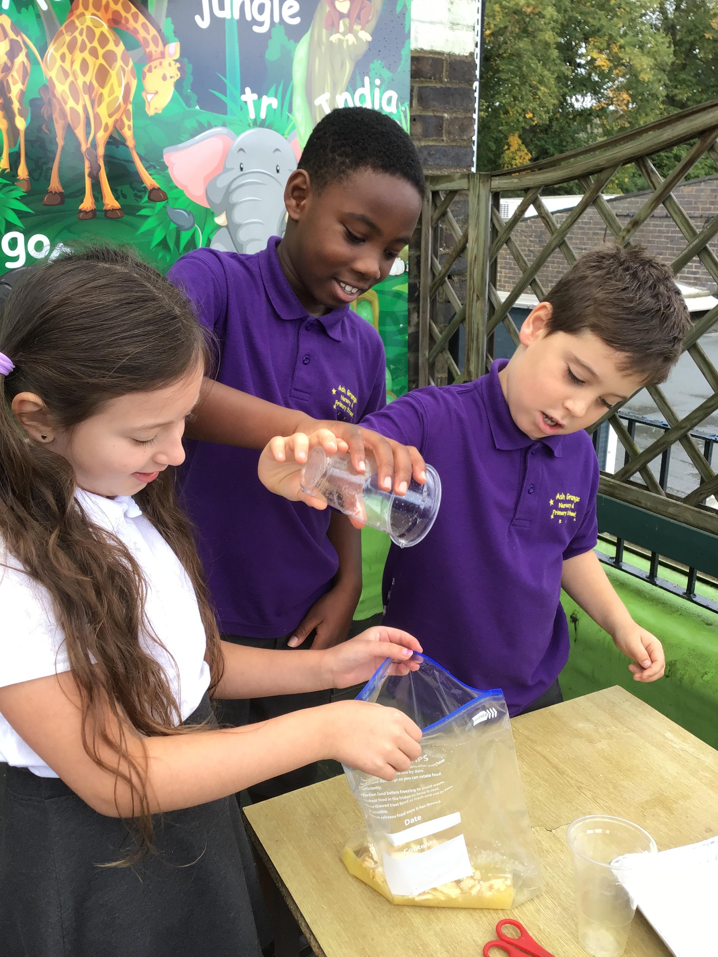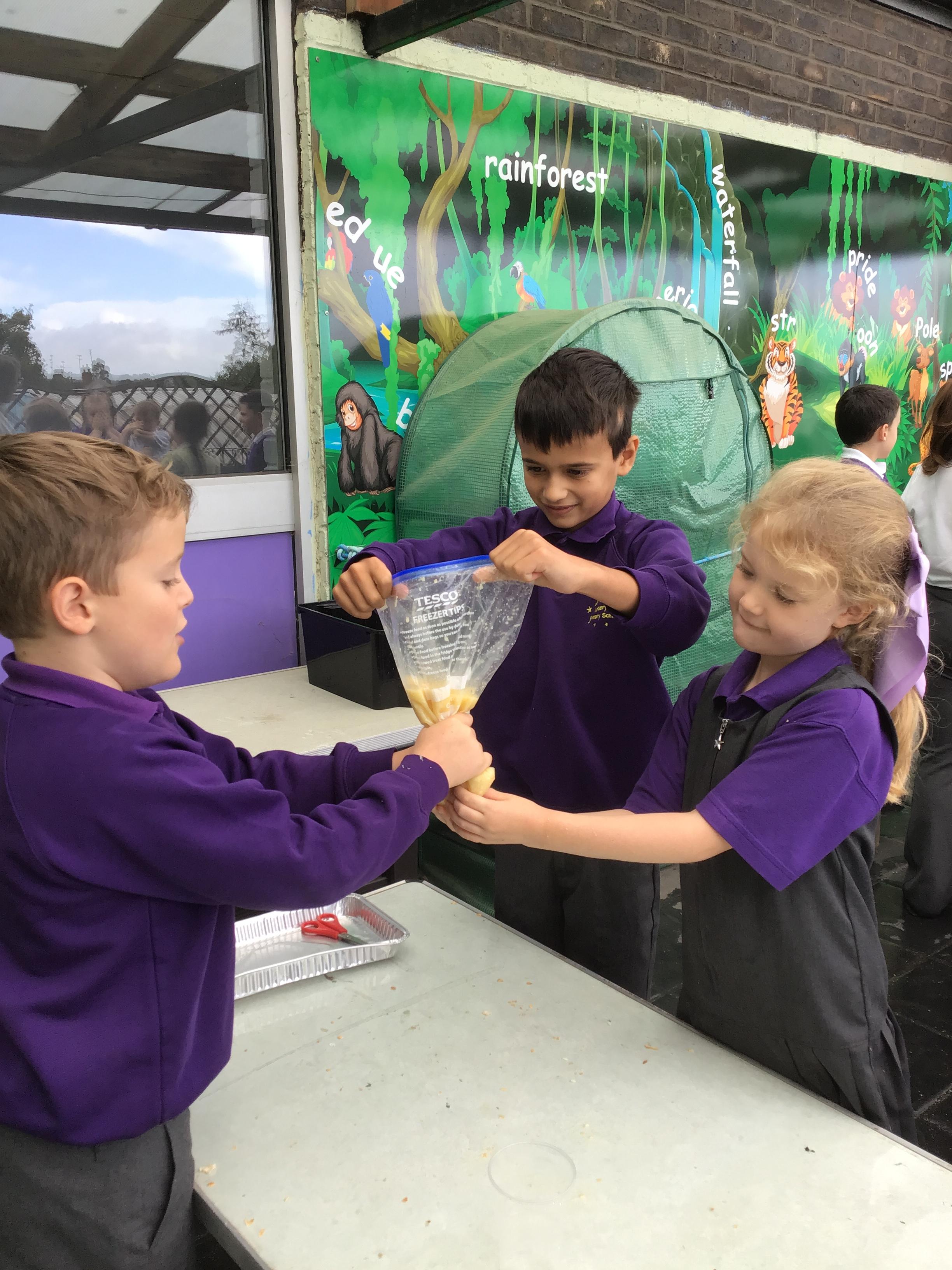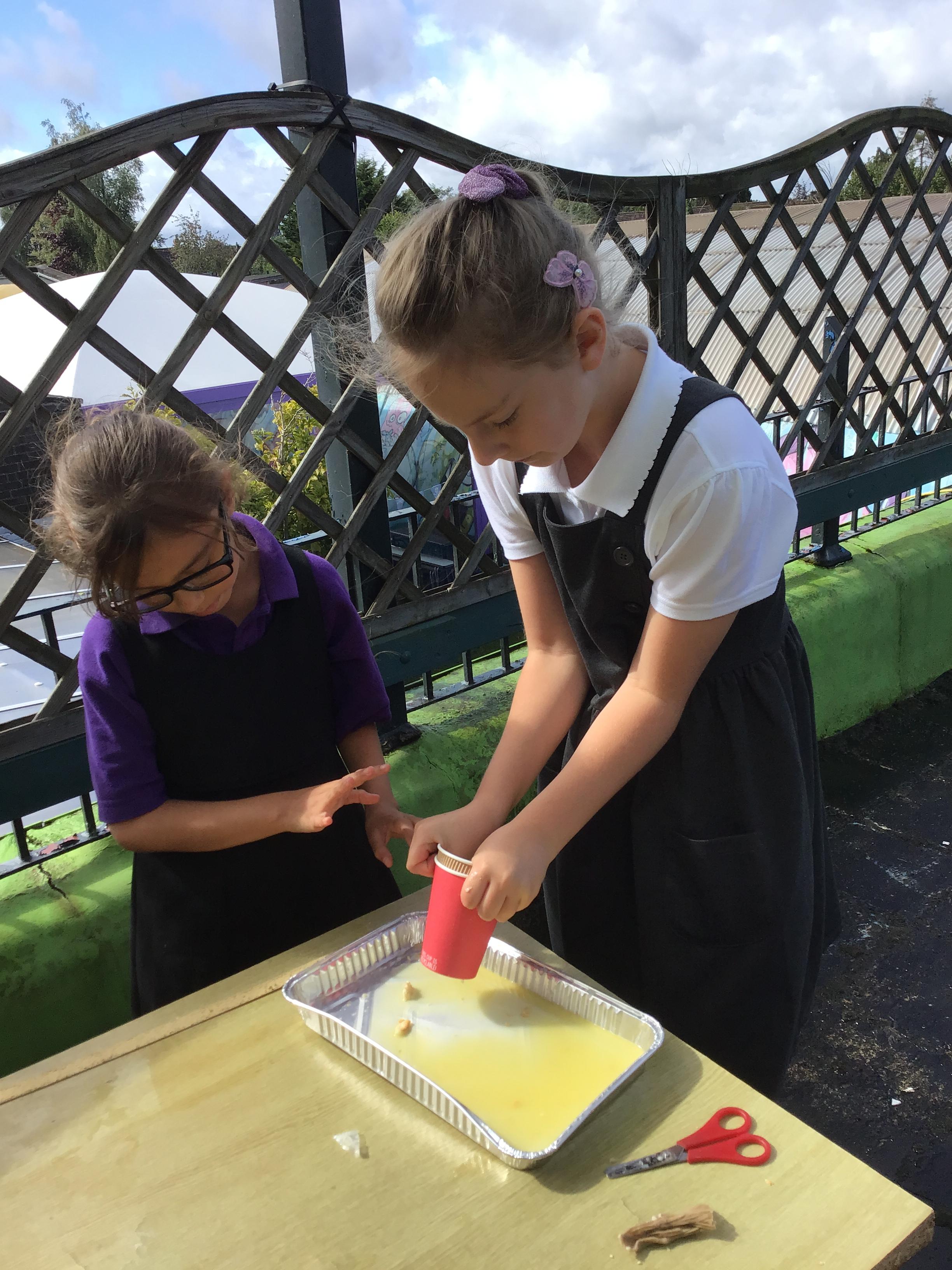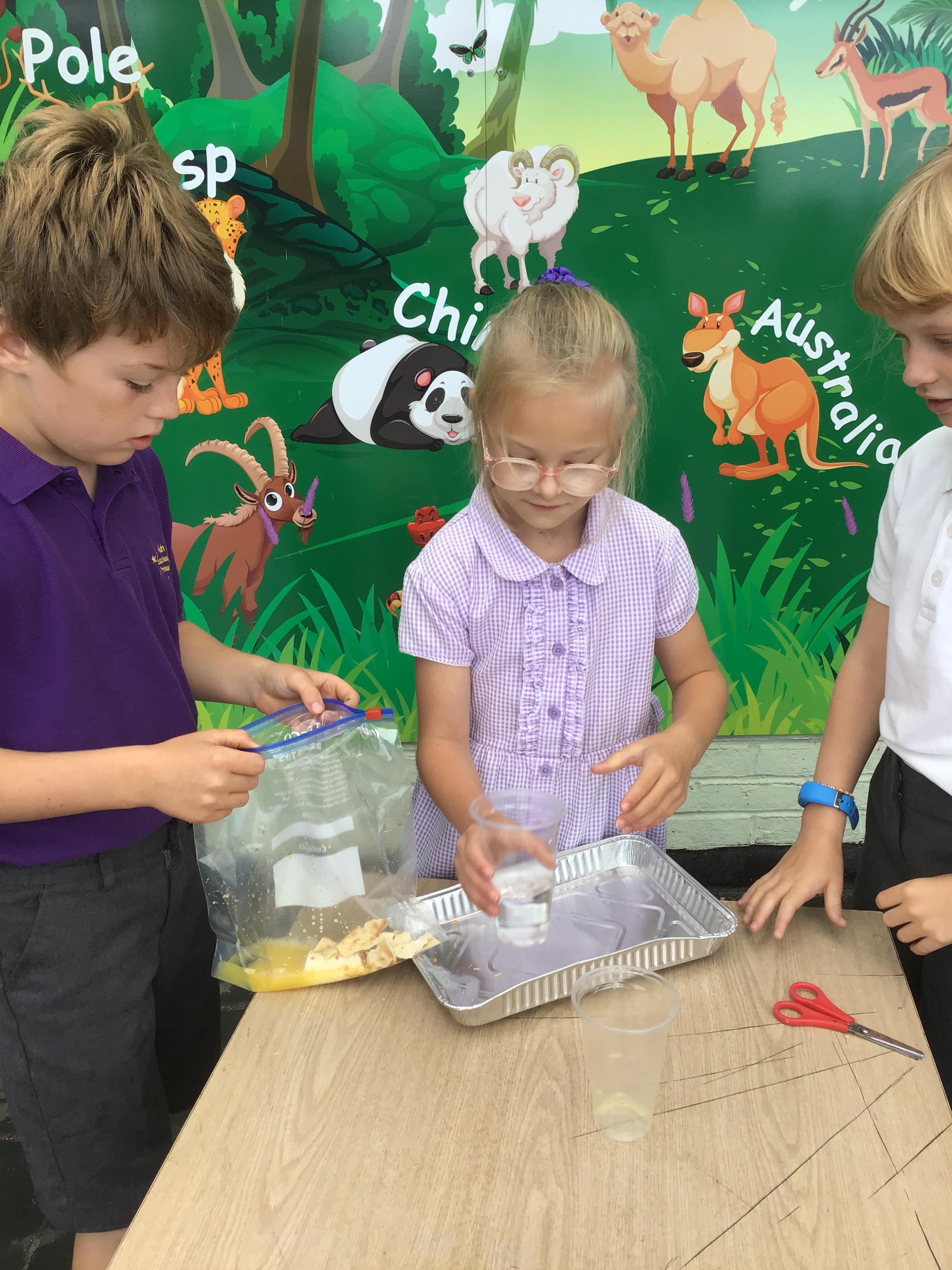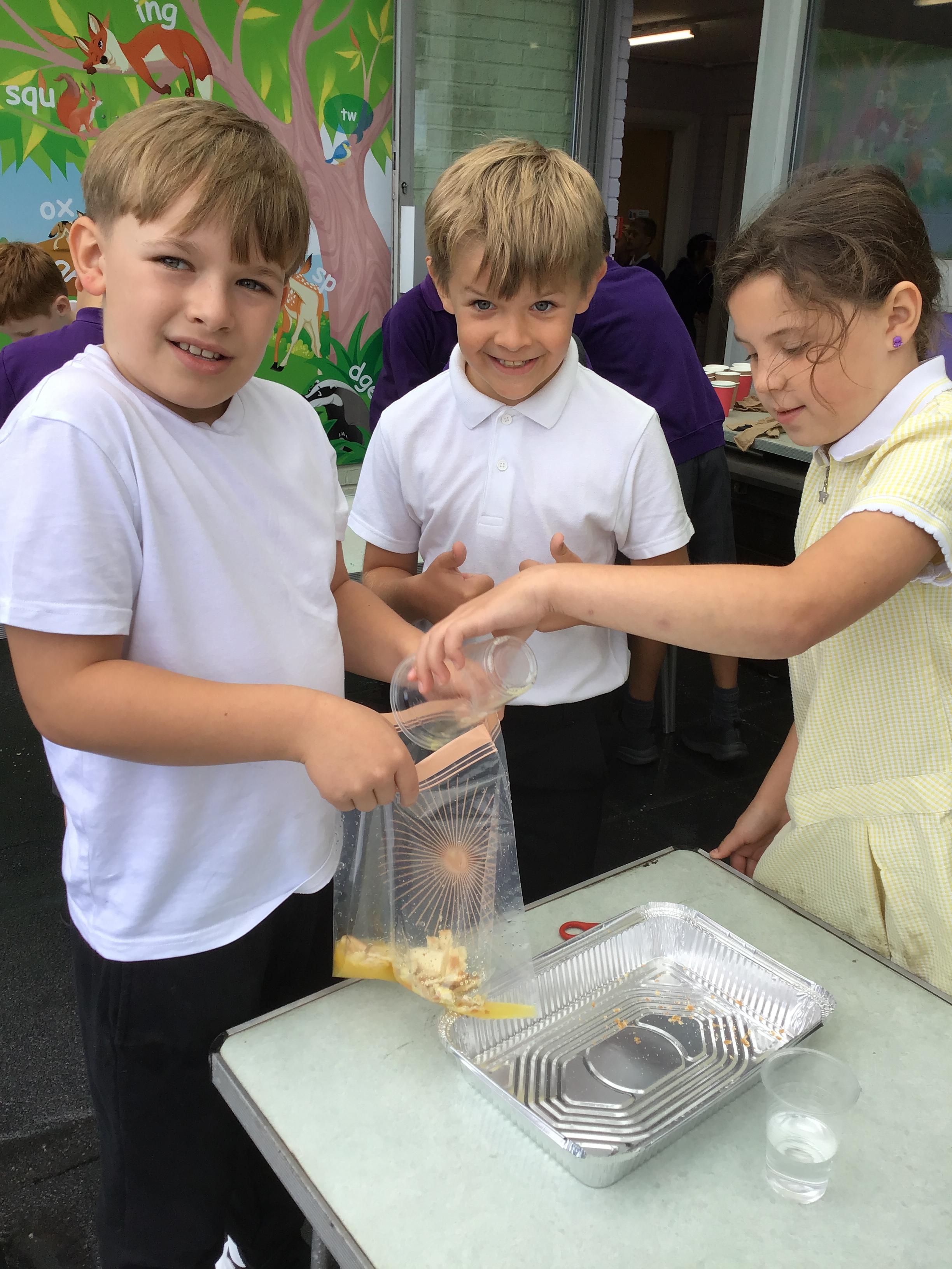 We had a fantastic, if not quite disgusting start to our topic by recreating a model of the digestive system! We use some crackers, banana, orange juice and water to show what happens to our food as it travels to the stomach, before showing how it moves through the small and large intestine, using tights! Eventually, it squeezes out at the other end!!