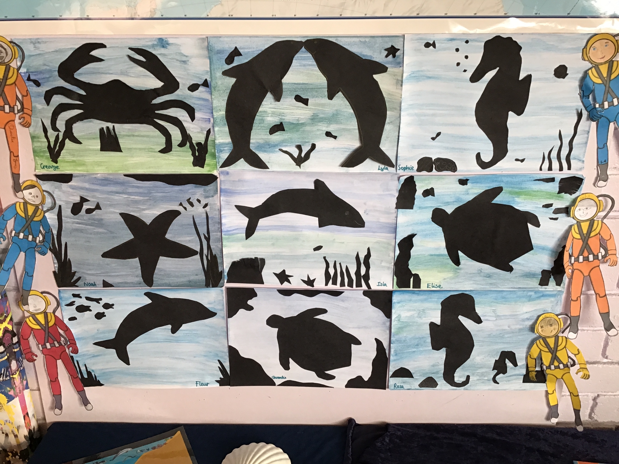 We painted our own sea background using watercolours and then created an ocean life picture with animals of our choice before designing our own deep-sea diver to explore. Have a look at the photos below.