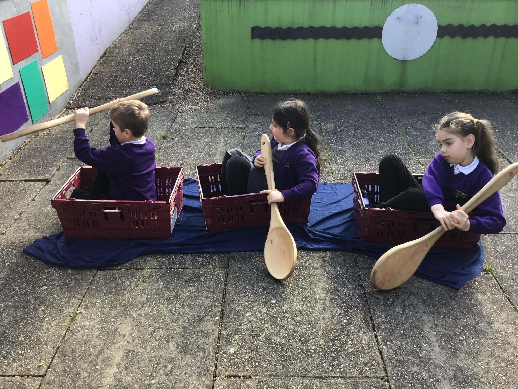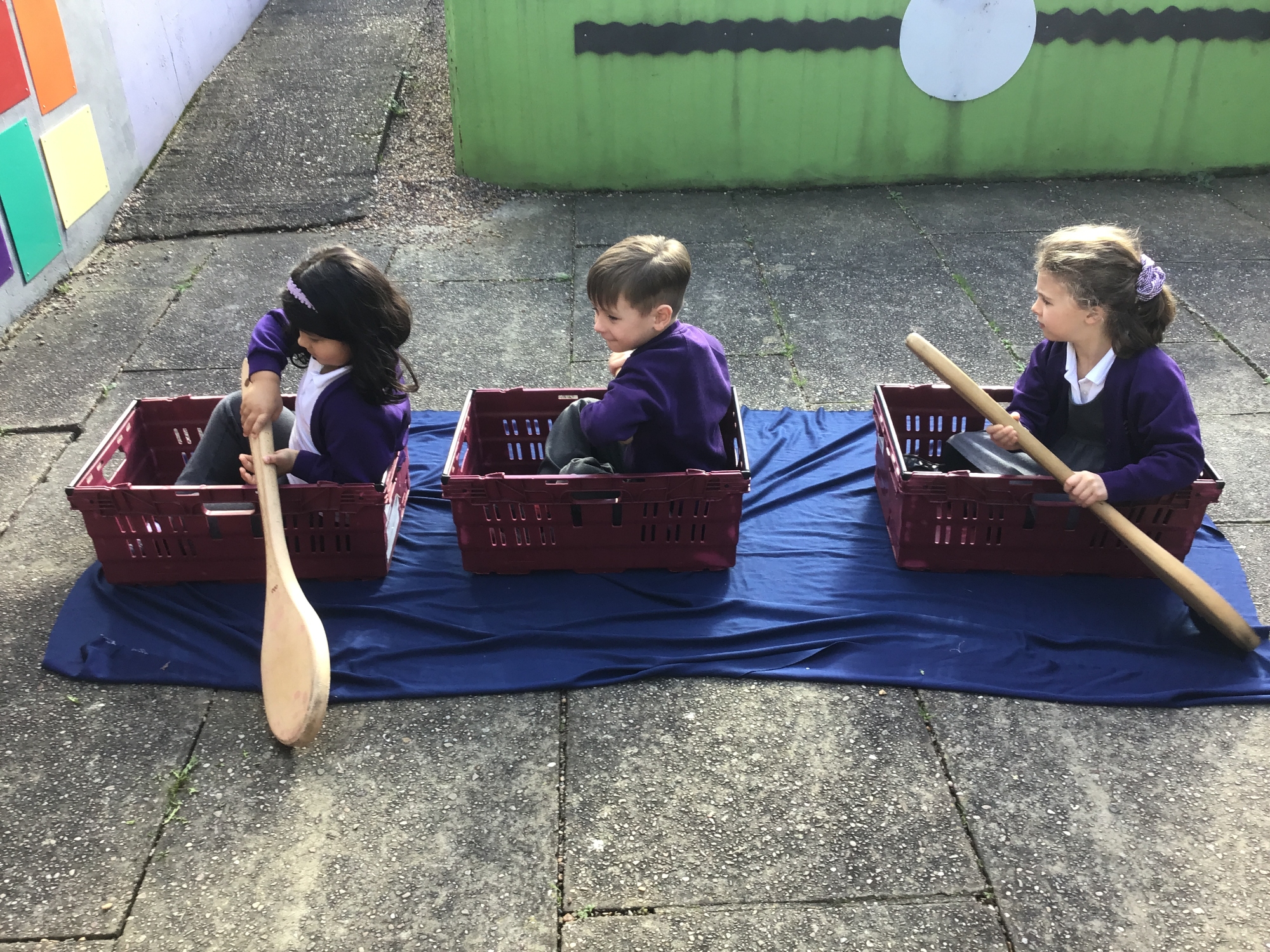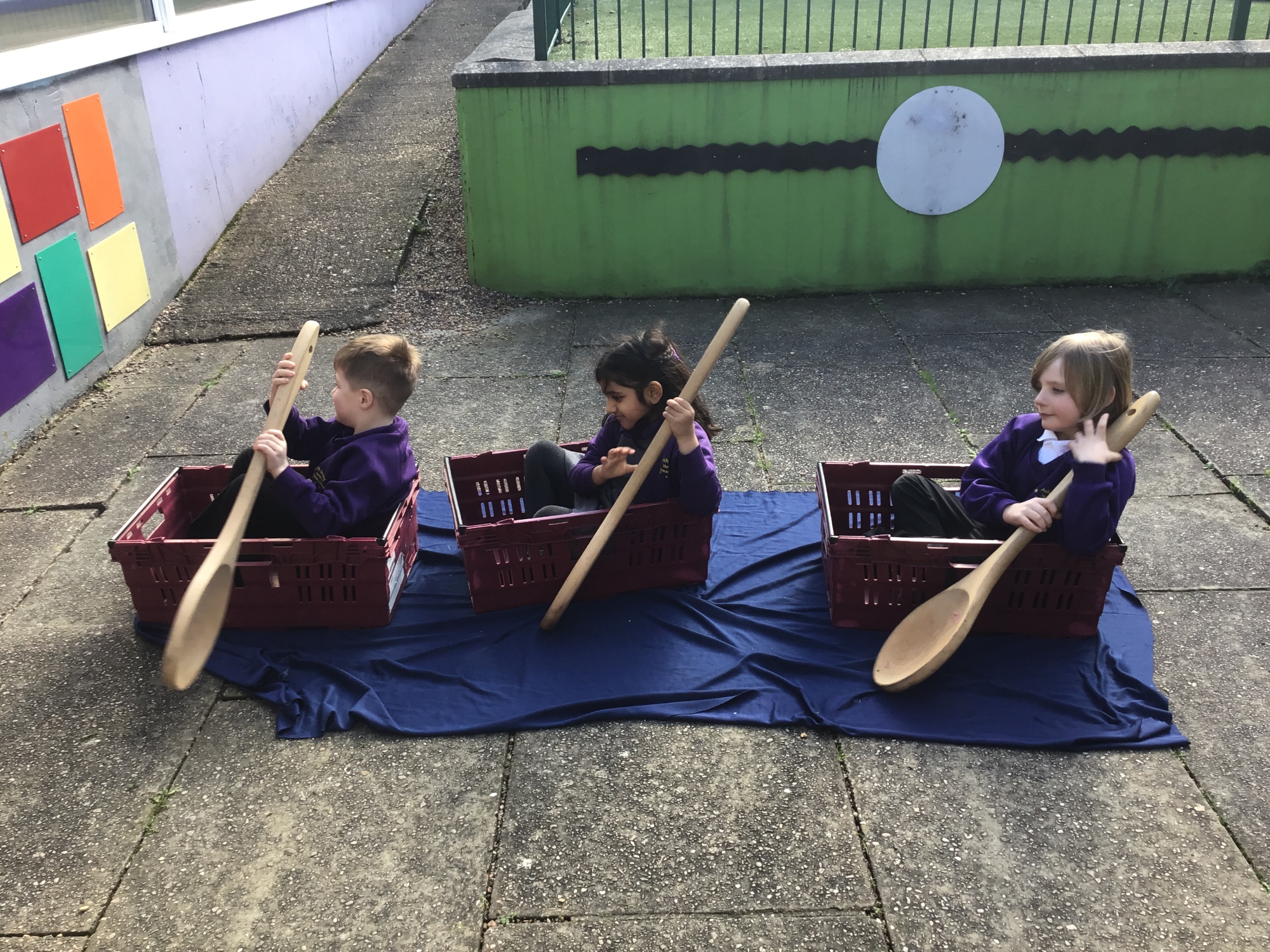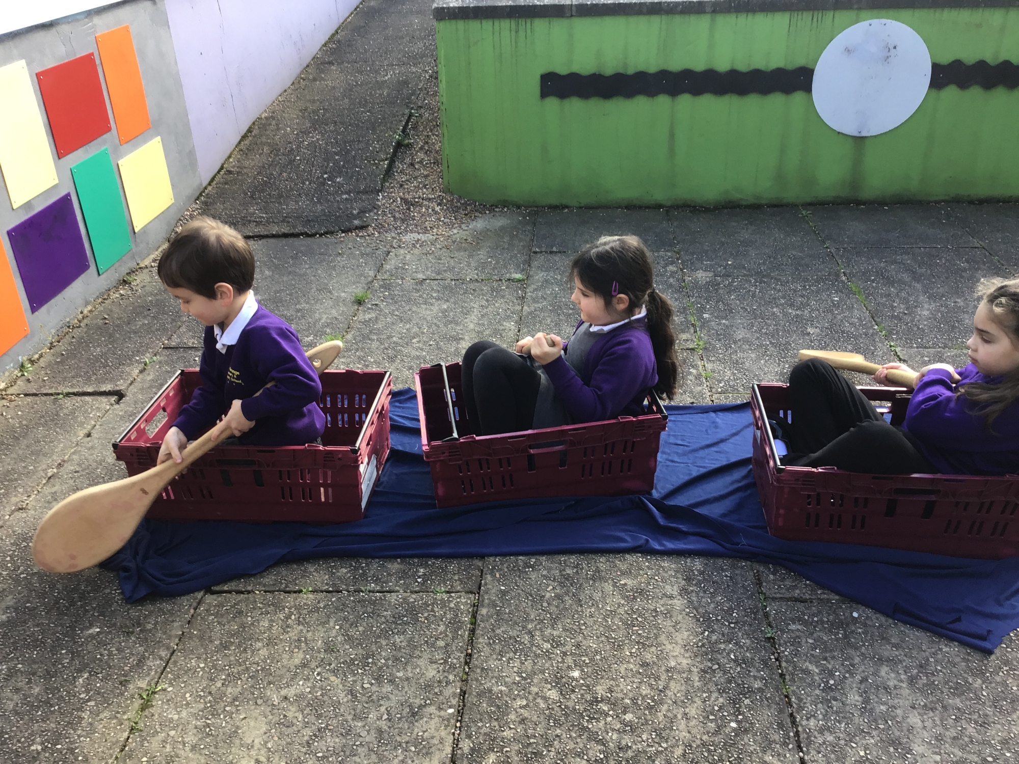 We pretended to be bakers like Thomas Farriner and pretended to row across the River Thames to safety in our boats!