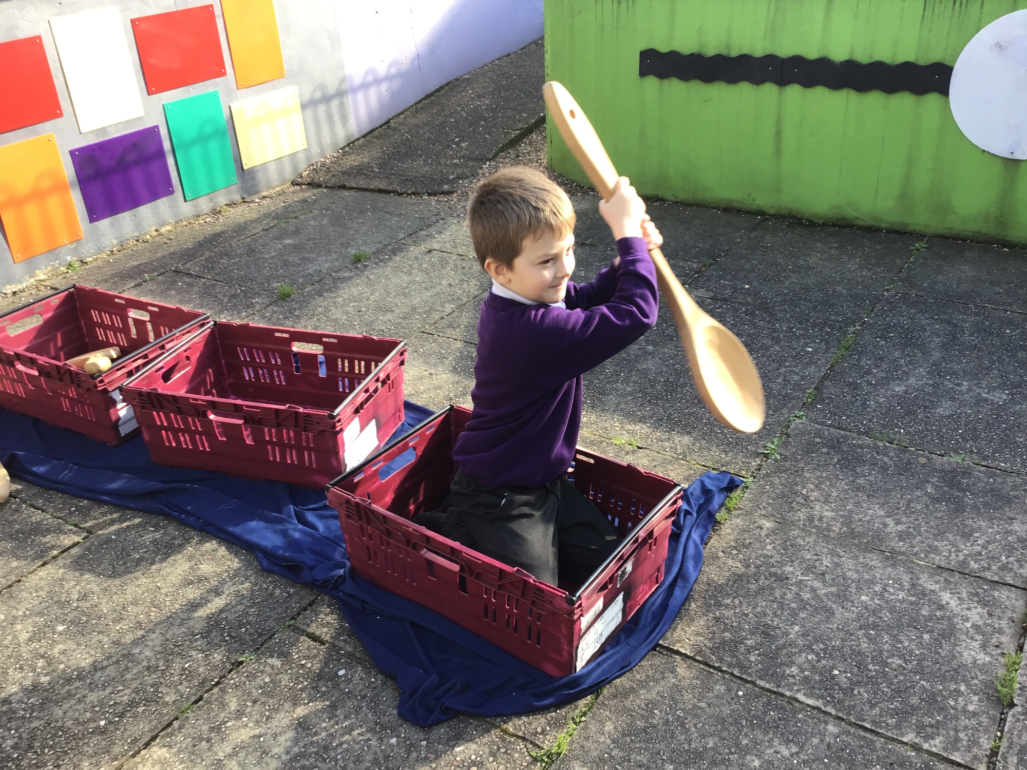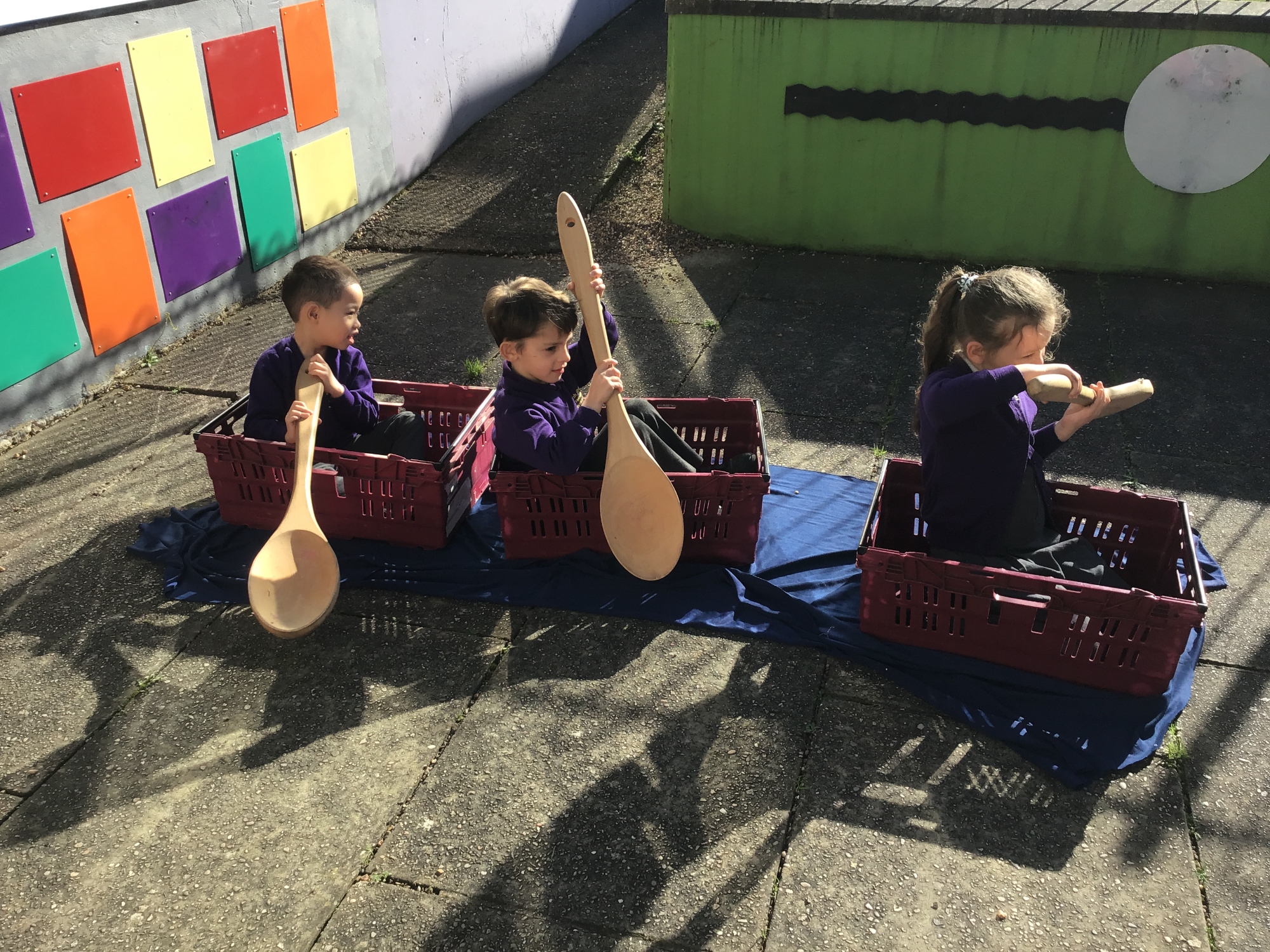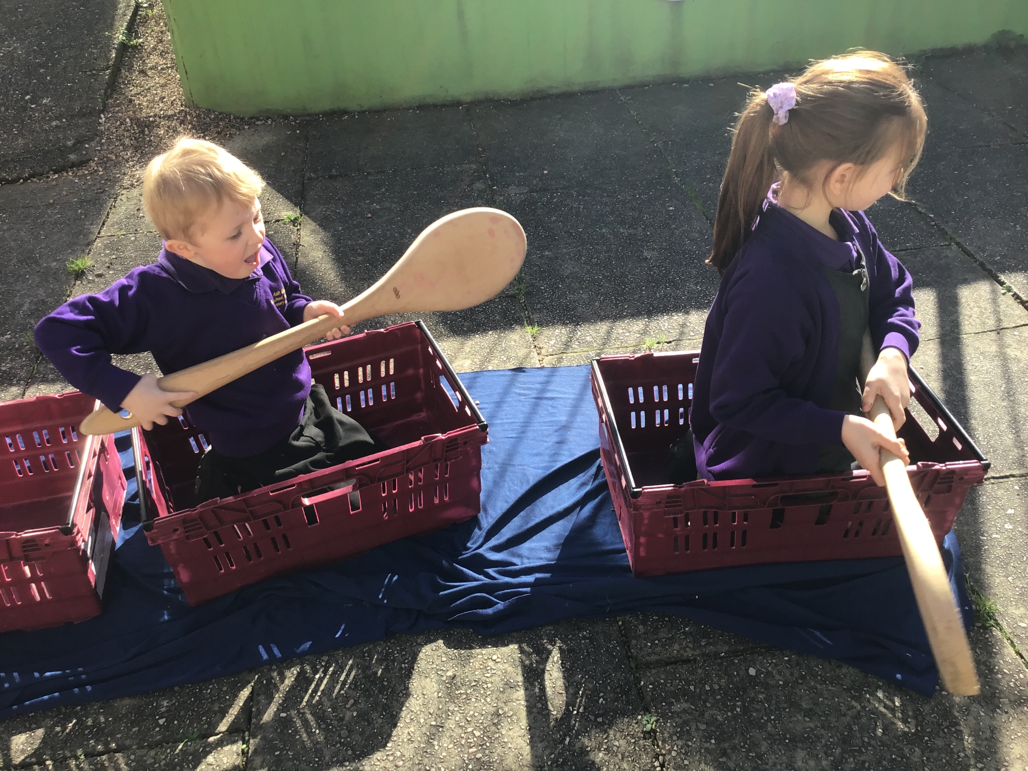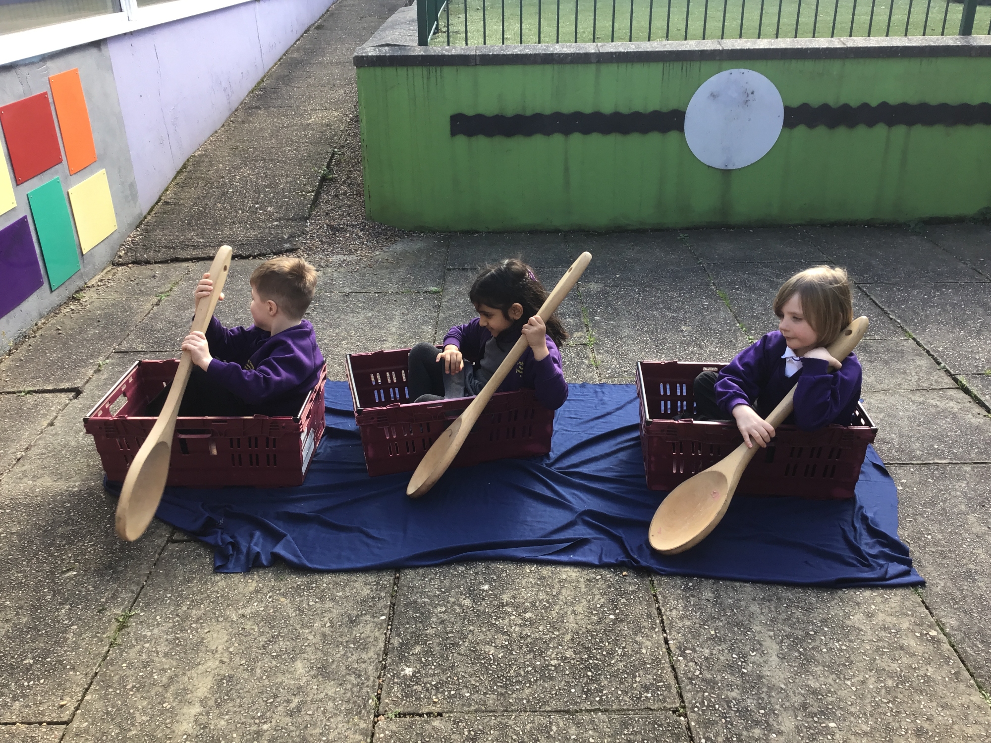 We pretended to be bakers like Thomas Farriner and pretended to row across the River Thames to safety in our boats!