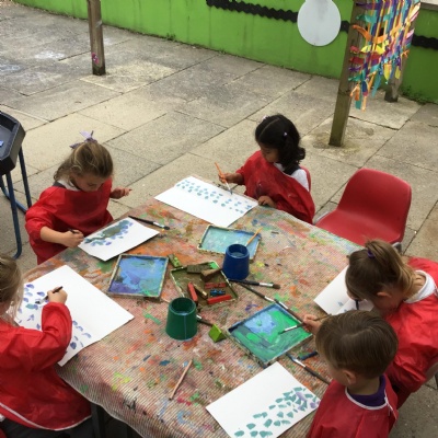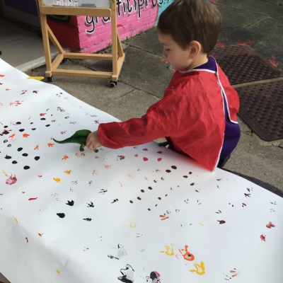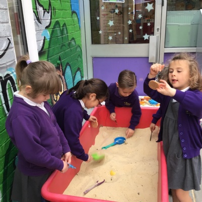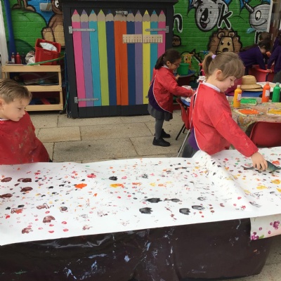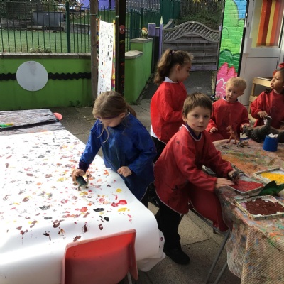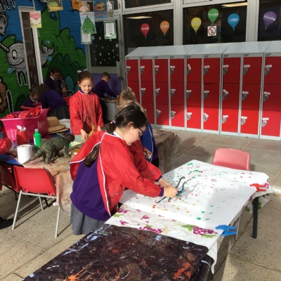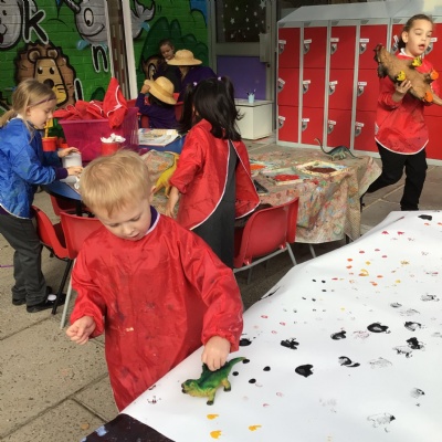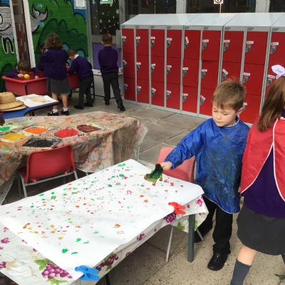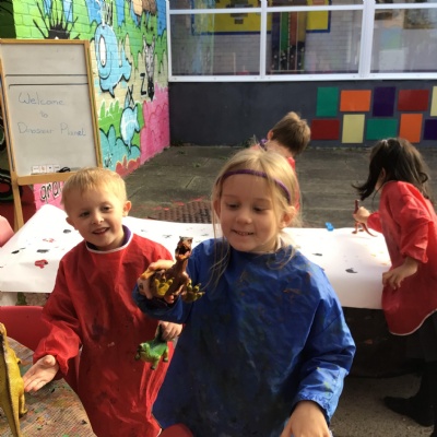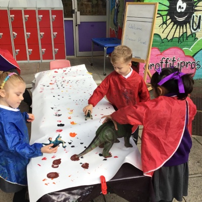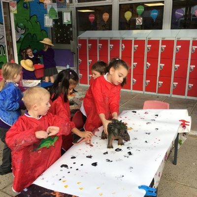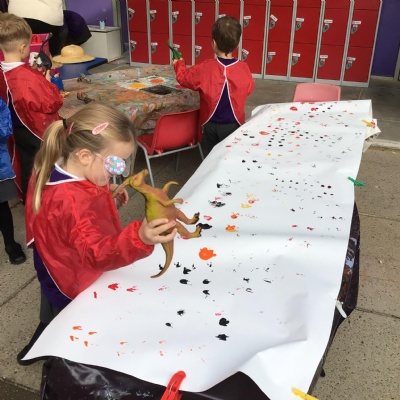 They enjoyed: digging for fossils in the sand pit; printing with dinosaur footprints;