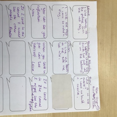 We were inspired by Caneletto's painting 'Regatta on the Grand Canal'. We had lots of questions about the painting and loved the painting techniques he used.