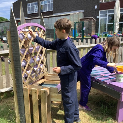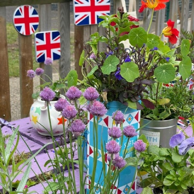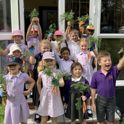 Out children grew plants from seed at home and at school, this year we grew loads of new flowers, fruit and vegetables, including potatoes and sweetcorn. We take part in competitions like Guildford in Bloom and take trips to local places to learn more and see other gardens.