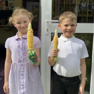 March 2023 - over the Easter holidays the gardeners started their seeds off at home - Zoe brought back her Morning Glory and sleepy sweetcorns.