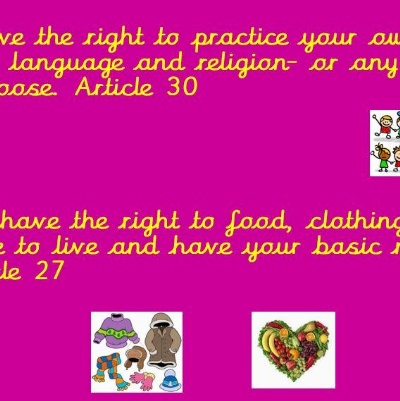 - Article 30: You have the right to practice your own culture, language and religion- or any you choose.