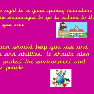 - Article 28: You have the right to a good quality education. You should be encouraged to go to school to the highest level you can.