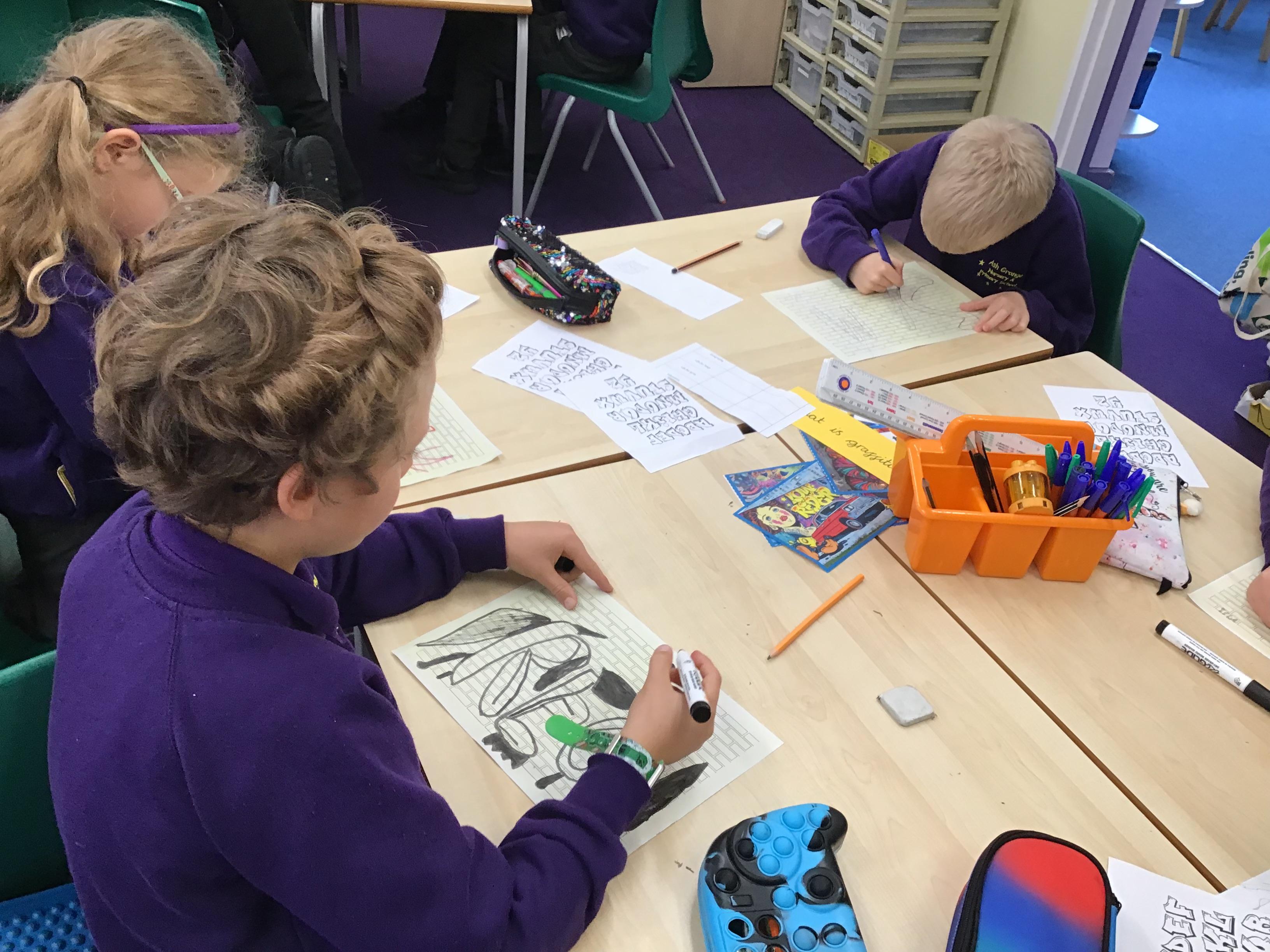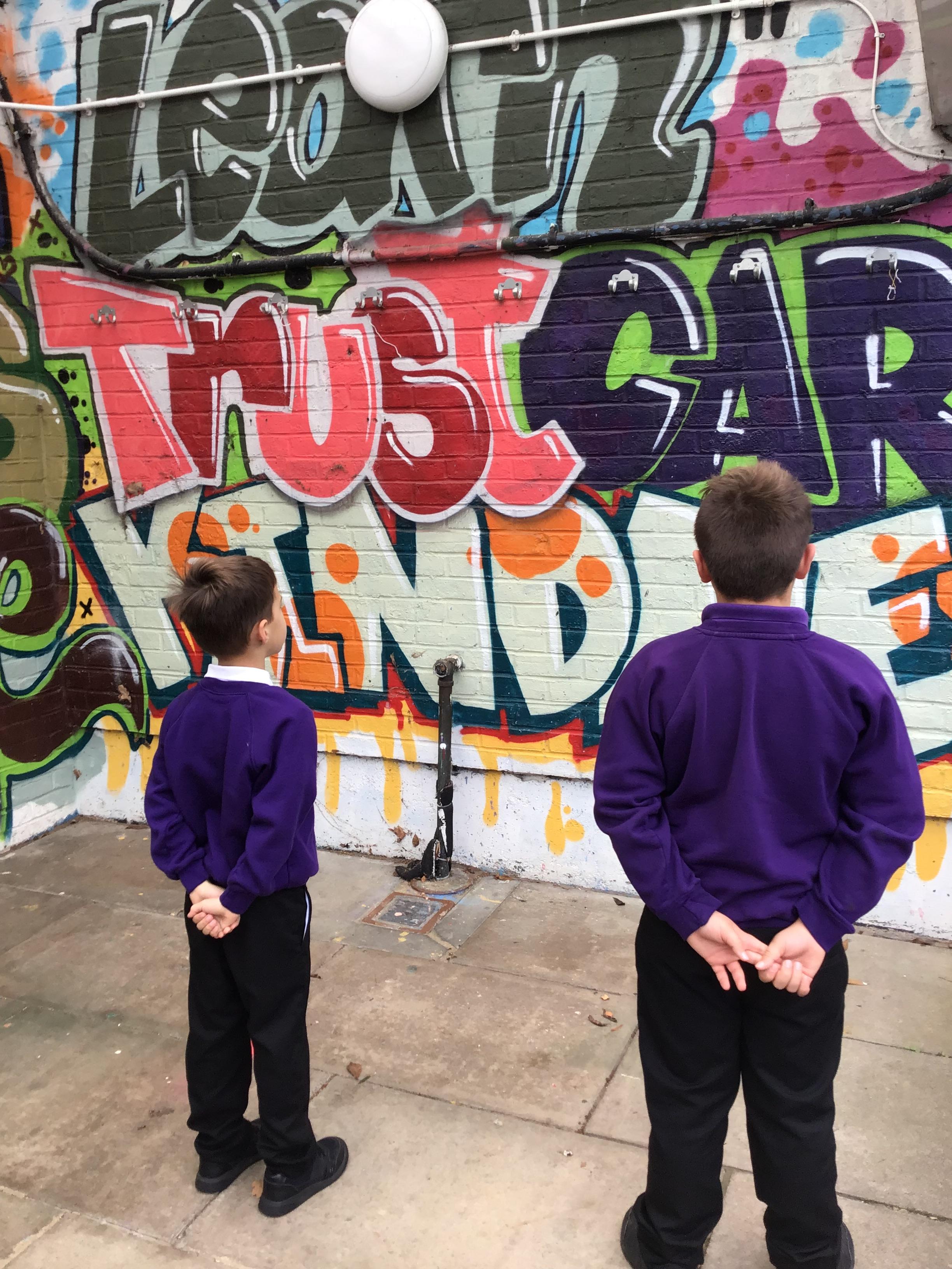 Year 3 started with an exciting walk around the school grounds, discovering a variety of graffiti styles that sparked a wave of curiosity and creativity. The vibrant street art inspired us to explore the different techniques and expressions found in graffiti culture.