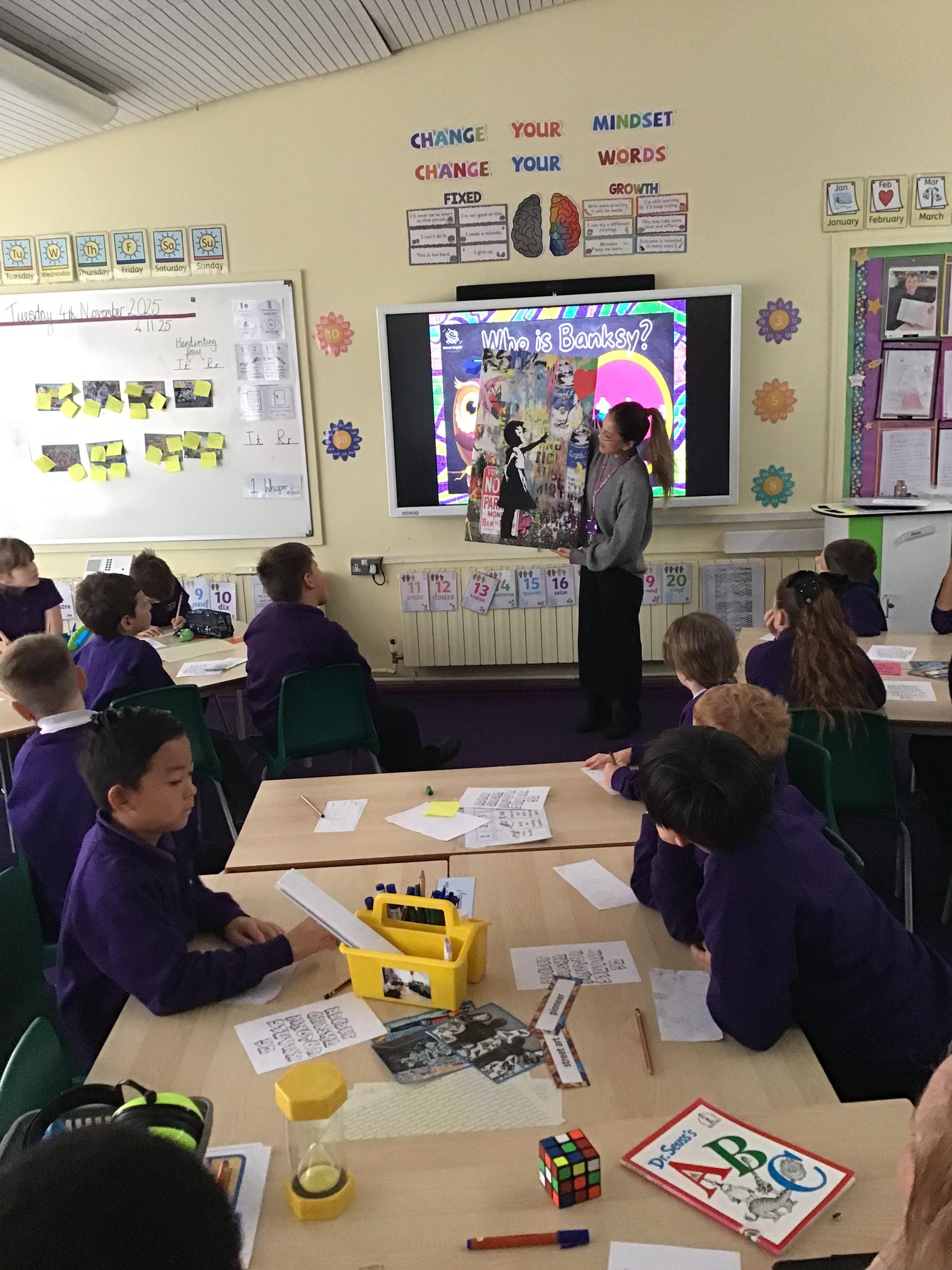 We also explored the work of one of the iconic street artist 'Bansky', whose artwork is proudly displayed in our school 'Girl With The Red Balloon.'